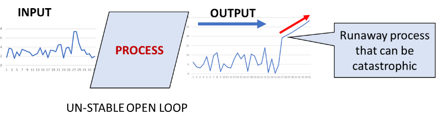 2. Unstable System: Unstable open loop processes are those whose output values are not bound by input and therefore may run away on either side.